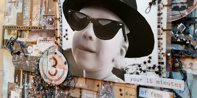 A képen a kisebbik fiam van, aki akkoriban nagyon szerette, ha különböző kamerás appokkal fényképezzük, és egész sorozatokat kellett róla készíteni. Nagyon sokat nevettünk ezeken, és ugrattuk is, hogy olyan, mint egy filmcsillag, aki pózol a kameráknak. Így ez lett az ő 15 perces hírneve. Sajnáltam volna, ha ezt az időszakot nem örökítem meg, mert nagyon jó visszanézni ezeket a képeket, ezért is foglaltam őket alkotásba.