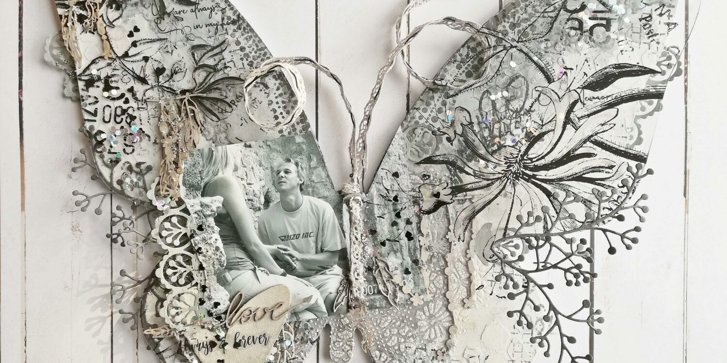 ÉS itt jött a szokásos “Szancsó kattanás”, mert mindig jön egy csavar 🙂 Nem lehetett megint az a megúszós koncepció, hogy csak egyszerűen feldíszítgetem. Nem, nem. Szárnyak! Még szárnyakat szerettem volna. Legyen csipkével telepakolt… Ok. de nincs az az idő, ami most elegendő lenne, hogy csipkéket festegessek, válogassak… Más kellett. Tádám!