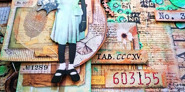 A Creative pad-ből rétegeztem a Tim Holtz paperdoll alá. A kislány ruháját kicsit megszíneztem, ehhez Distress tintákat használtam. Ja, meg kapott egy cuki szárnyat is, és egy falevelet (skeleton leaf; nem jut eszembe, mi a neve magyarul bocsi).