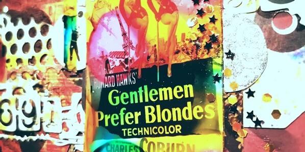 Szóval, miközben eszeveszetten keresgéltem a fotók között, áttúrtam a mindenes dobozomat is, amelyben olyan képek, borítók, magazinok stb vannak, amik tetszenek, és amiket egy-egy jövőbeli alkotáshoz szeretnék majd felhasználni. Hát így akadt a kezembe a szóban forgó plakát (Gentlemen prefer blondes) mini változata is, amin Jane Russel és Marilyn Monroe látható.