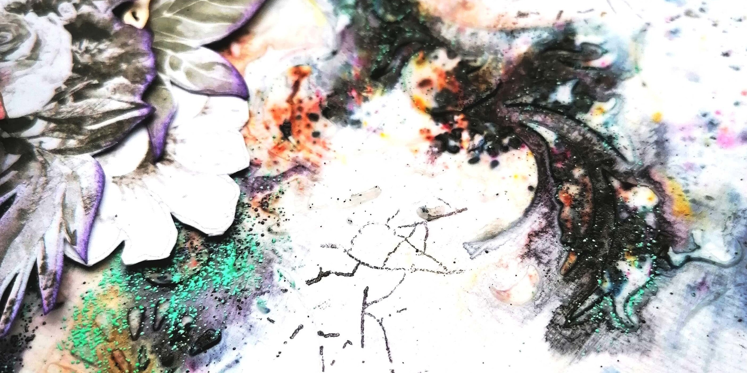 Újratervezés egy kis maradék felhasználással vegyítve jöhet? A februári kihívásra Virág csodaszép, romantikus, kör alakú layoutját „koponyásítottam”. Az elrendezést megtartottam, illetve most én is virágokat használtam a díszítéshez, (erről az utóbbi időben leszoktam, igyekszem minél kevesebb virágot használni), csak kicsit sötétebbre vettem a hangulatot…