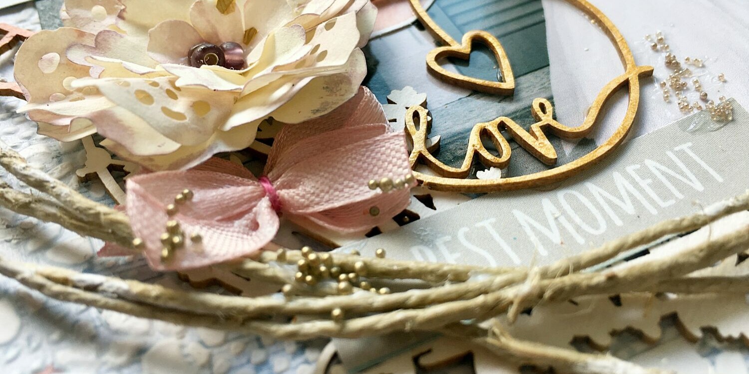 Nagy kihívás volt nekem, ennyire mintás papírral nem is tudom, dolgoztam-e már valaha… a szokásos módon én is átlátszó gessoval kentem át a papírom, ez adott neki egy plusz tartást. Ezek után az új (nem új, csak nekem) doily stencilemet használtam modellpasztával (hogy tudtam én eddig enélkül élni? :D), majd a 13arts vízfestékének korall színét folyattam itt-ott. A választott fotóm alá a 7dots studio Northern Lights készletének címkekivágatait használtam, levendulás és vizinövényes chipiket, utóbbiakat szintén az új vízfesték készlet zöldjével színeztem. Az alamor most új kattanás nálam, már megint használtam ezt is, ezt a már korábban említett korall színnel festettem meg. Nagyon cuki a scrapiniec Clouded hearts chipboardja, itt sem tudtam nem használni – szerintem fogok is még rendelni belőle 🙂 Ezután nem bírtam ki, muszáj volt Bea kenderzsineg ötletét kipróbálnom 🙂 ezt fehér gessoval száraz ecsettel megkenegettem, majd jöhetett egy szép rétivirág, két peony (pünkösdirózsa?) a Love in Bloom kollekcióból, a “szokásos” masnikám ami szintén az esküvőről maradt (már nincs sok esküszöm :D), piatek szómatricák, majd virágos és csirkehálós bélyegzés. Pacáztam picit fehér és arany splash tintával, majd szóródíszeket használtam: arany hologramcsillám, arany mikrogyöngy, fekete mikrogyöngy és mini üveggolyók. Kész! Szeretem oldal lett. Remélem, nektek is tetszik 🙂