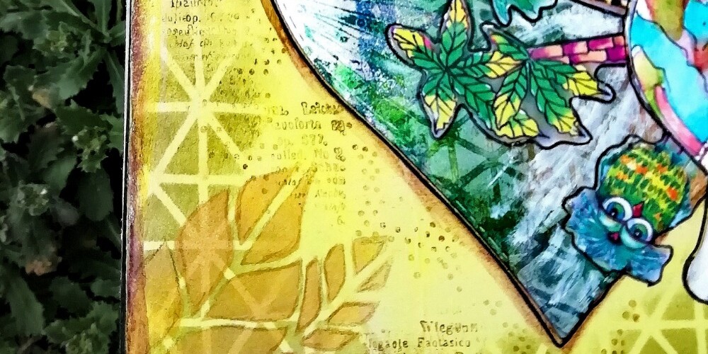 A kihívásokat ebben az évben egy chipboard albumban késztem el. A moodboard zöld színeihez igazodva, Amsterdam akril festékkel befestettem az egész oldalt. Volt egy elrontott gel pressel készített hátterem, a szívet ebből vágtam ki Sizzix segítségével. Art by Marlene kollekciójából választottam a kislányt (a ruhájának a színe nem passzolt a moodboardhoz, ezért fehér gessoval átszíneztem 😉 ) a földgömbbel. Köré állatokat és növényeket raktam, ezzel is szimbolizálva, hogy a FÖLD MINDENKIÉ. Vigyázzunk rá! Barna, zöld Distress Inkekkel és Marlene stencilekkel maszkoltam. Végül pedig bélyegeztem fekete tintával.