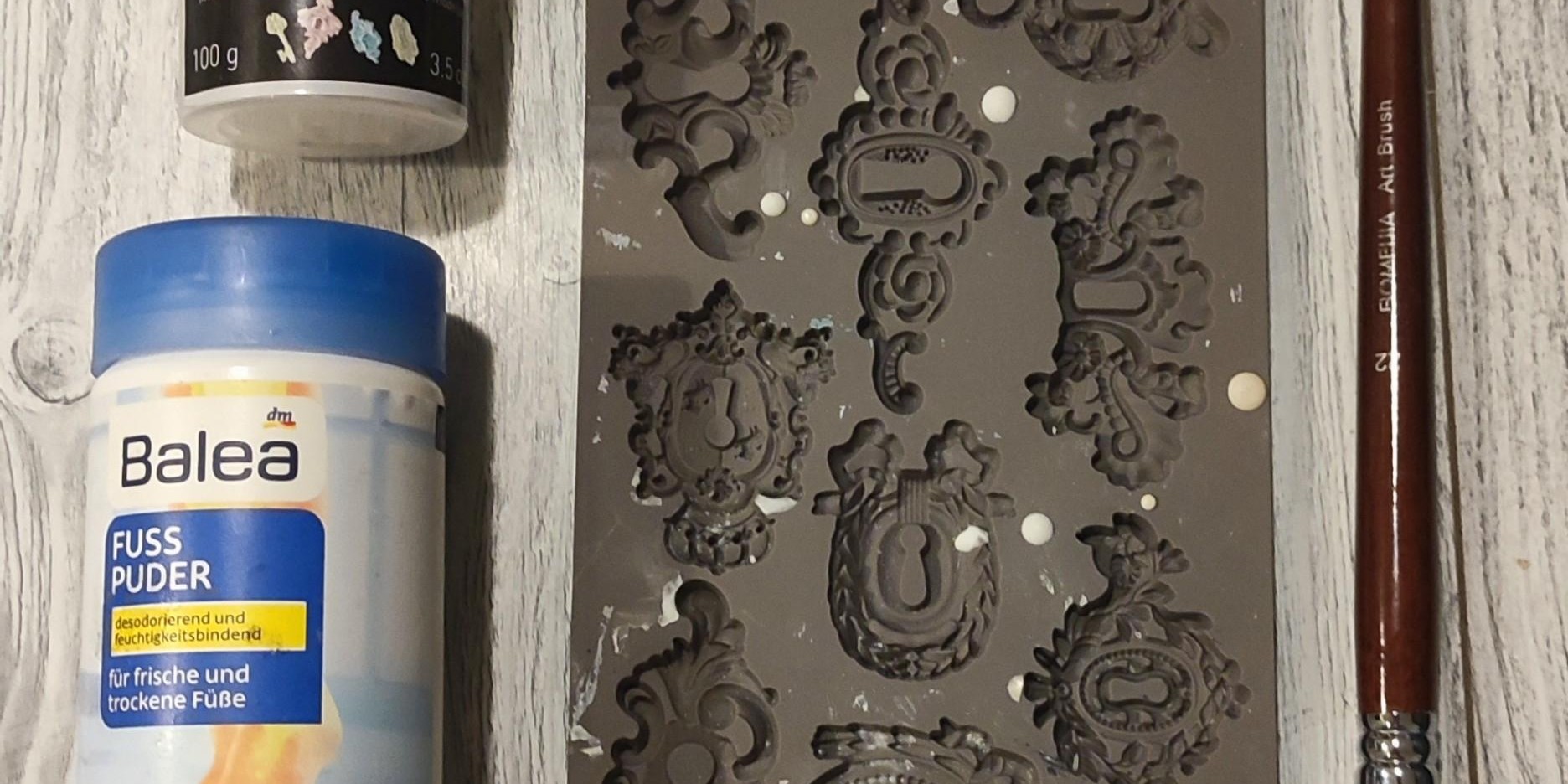 Egy ecsettel seperjük be a hintőport a forma minden apró mélyedésébe.