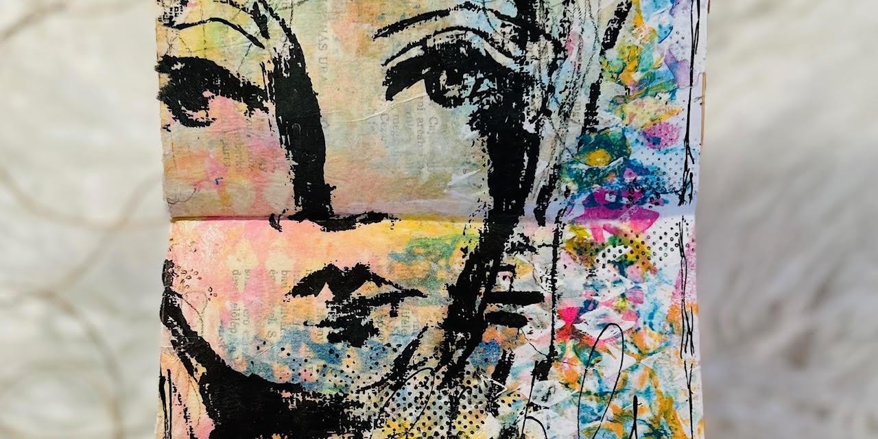 Egy egyszerűbb, de mutatós, dupla oldalas Dina Wakley journal oldalt hoztam, ami kivételesen állítva két oldal. Ilyet ritkábban készítek, de az arcos kollázs papír szett az egyik kedvencem, így a méret adott volt, az én journal könyvem viszont egy kicsi könyvecske, így a fej motívum lett a főbb elem.