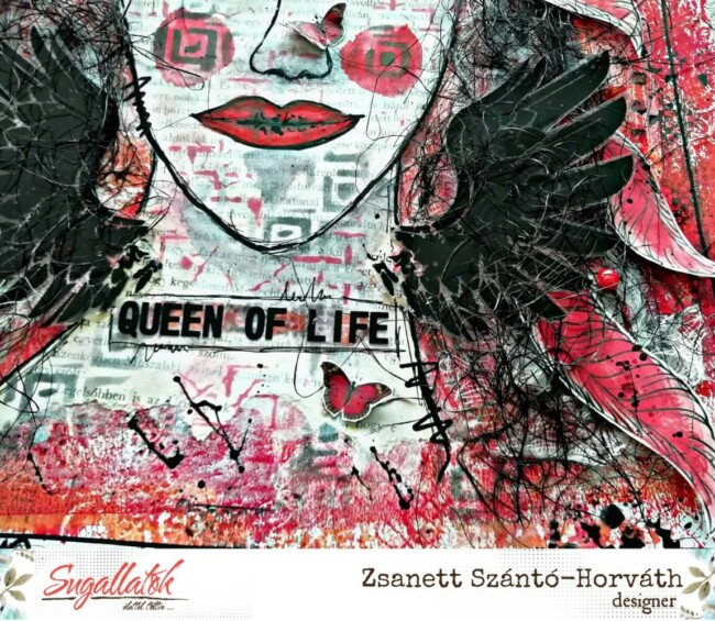 Sziasztok! Először is drága Szancsónak szeretném megköszönni a lehetőséget, hogy az egyik “kedvenc” színemmel alkothattam. Továbbra sem került hozzám közelebb ez a szín. 😀 Az oldal alapja, egy korábban gel pressel készült háttér, ami nem tetszett, ezért félre tettem. Gondoltam jó lesz ehhez a kihíváshoz. Megrajzoltam az arcot, de sehogy sem állt össze. Virág sugallatának…