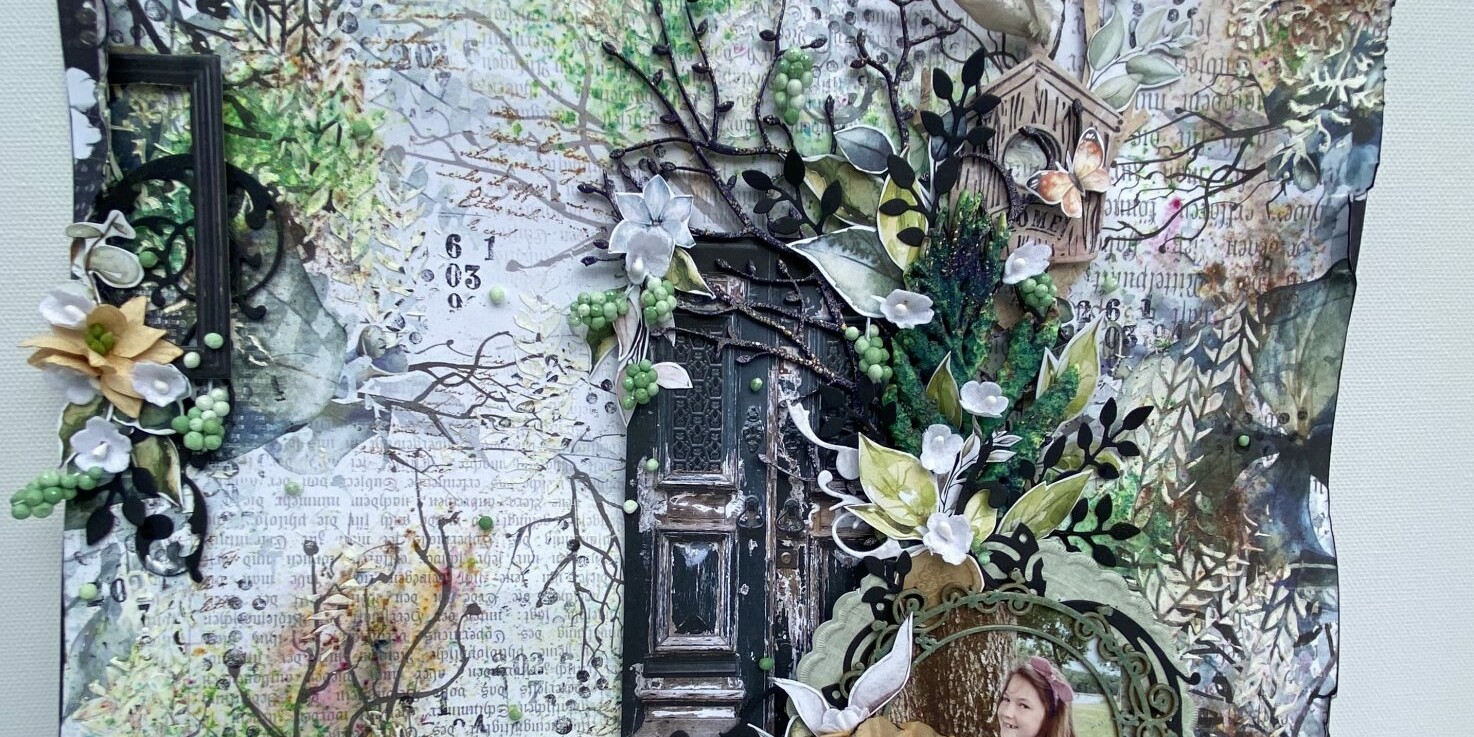 Miután a kisebb kompozíciókkal is elkészültem kialakítottam a kis behajtásokat, amelyeket fekete tintával emeltem ki. Háttérpapírnak szintén a The Versailles papírkészletéből választottam egyet.