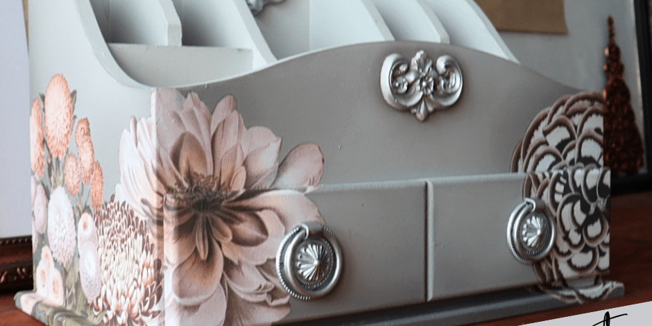 A végén a fogantyúkat és a 3D díszeket egy kis redesign with prima ezüst viasszal emeltem ki.