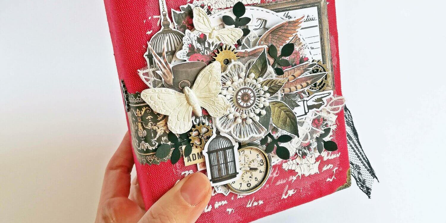 Külön elkészítettem a belső oldalak többségét, figyelve arra, hogy minden oldalpárra jusson valamilyen figyelemfelkeltő elem. Majd beragasztottam az albumba és társítottam hozzá az ellentettjét: a mozgalmasabb díszes oldal mellé visszafogottabb vagy “üres” oldalt.