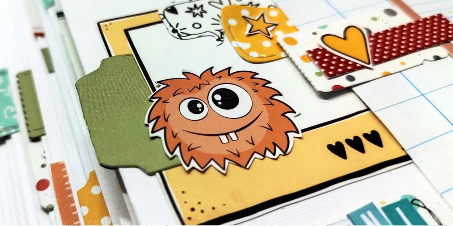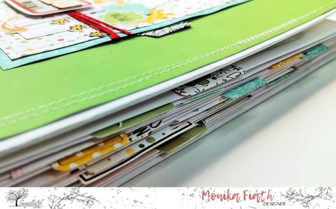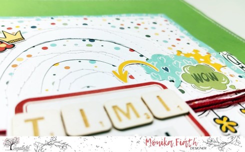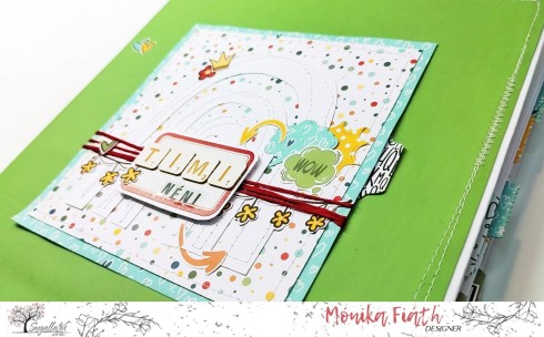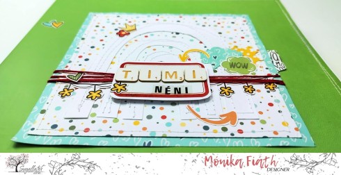 A díszítésről: a szipiszuper You Rock készletből vágtam tageket, képregényes felhőket, bannereket Sizzix-szel, kis kezemmel meg ollóval a kivágóívet és a cuki mintákat a design papírokból. Bekészítettem a színben tökéletesen passzoló betűmatricáimat és go! Vagyis inkább mutatom 😀
